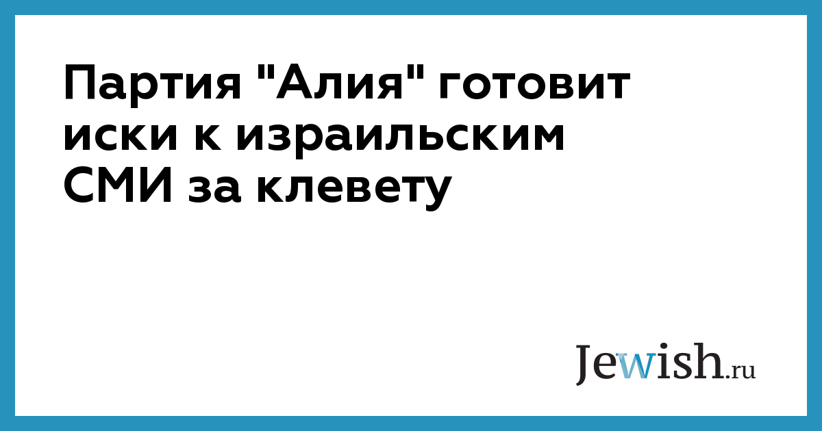 Партия "Алия" готовит иски к израильским СМИ за клевету