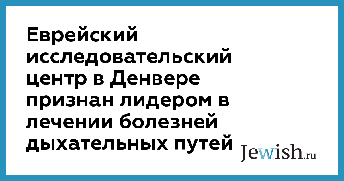 Еврейский исследовательский центр в Денвере признан лидером в лечении болезней дыхательных путей