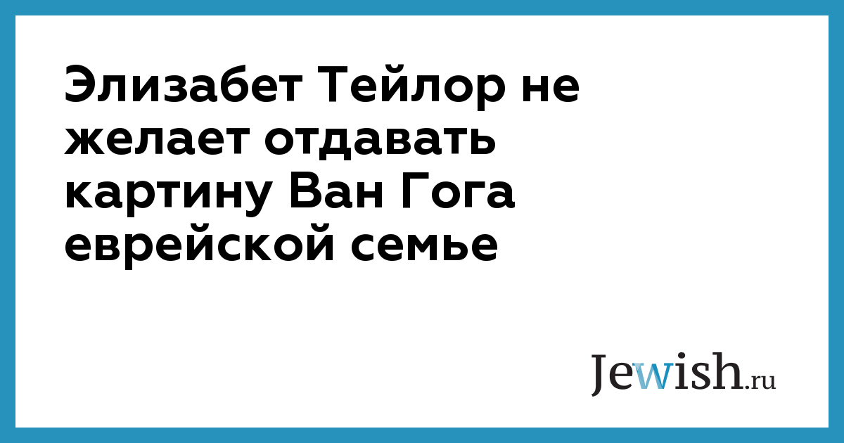 Элизабет Тейлор не желает отдавать картину Ван Гога еврейской семье