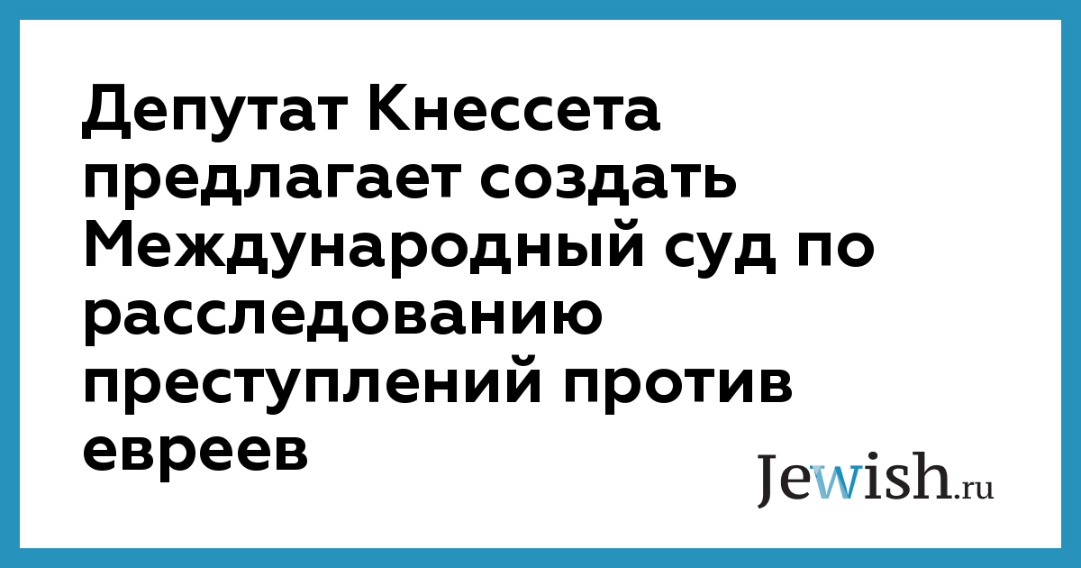 Депутат Кнессета предлагает создать Международный суд по расследованию преступлений против евреев