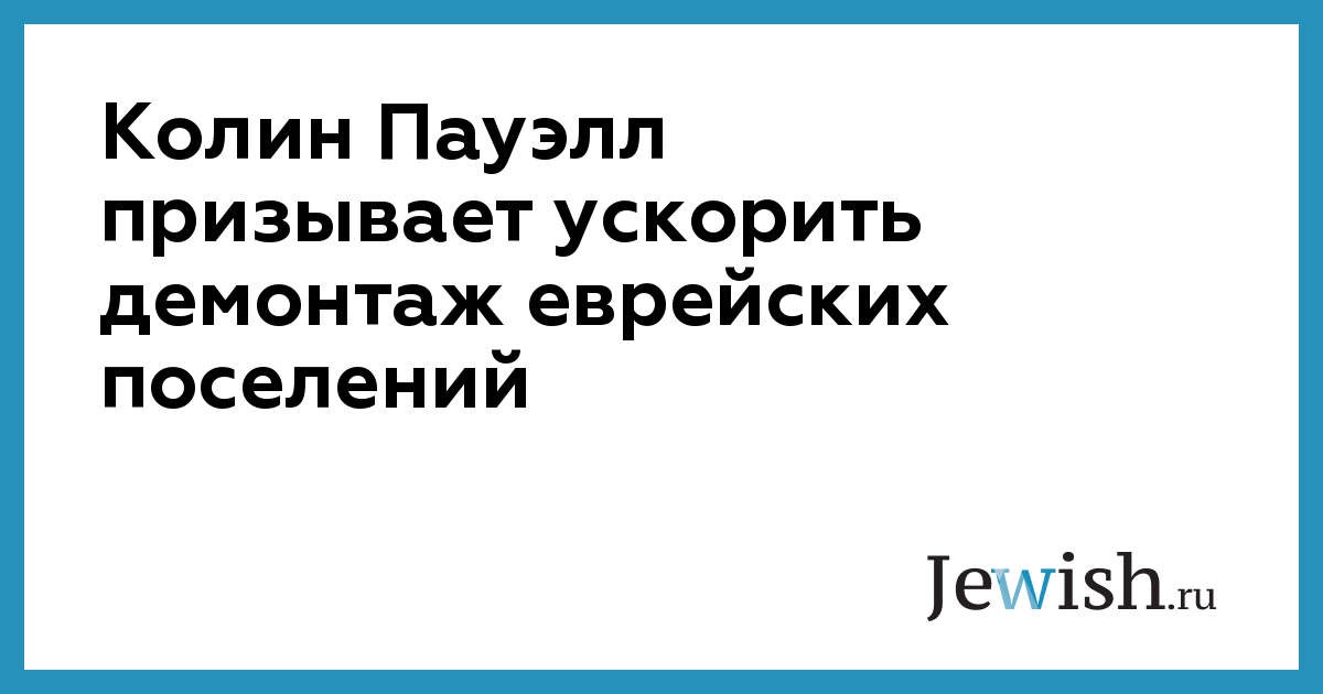 Колин Пауэлл призывает ускорить демонтаж еврейских поселений