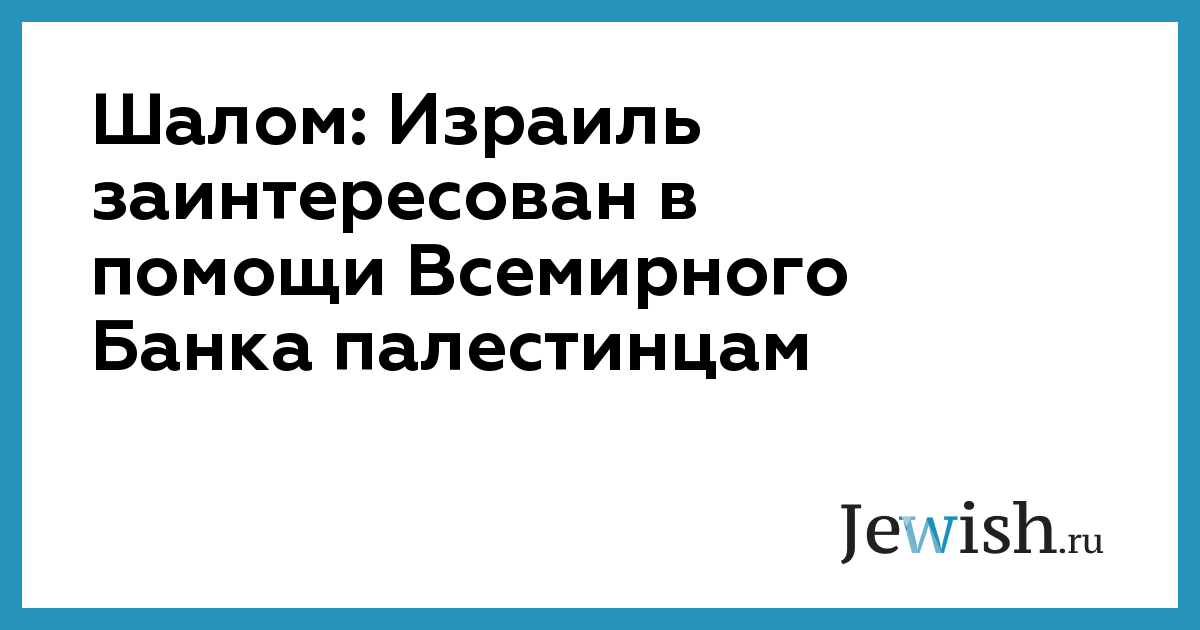 Шалом: Израиль заинтересован в помощи Всемирного Банка палестинцам