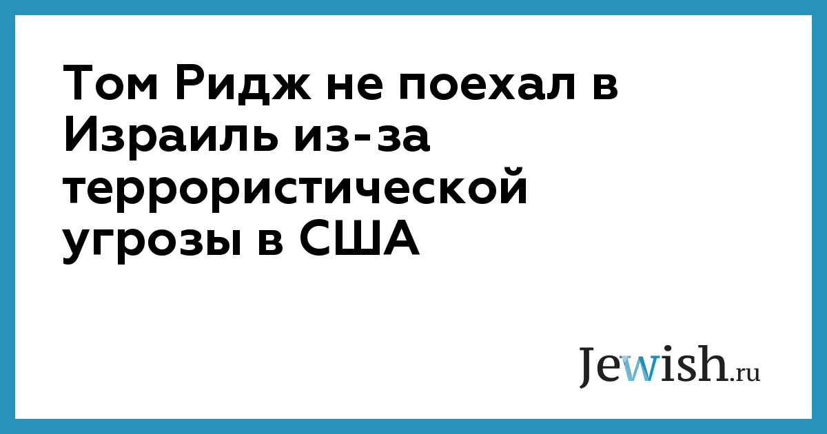 Том Ридж не поехал в Израиль из-за террористической угрозы в США