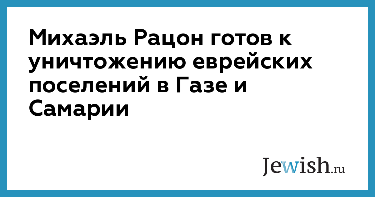 Михаэль Рацон готов к уничтожению еврейских поселений в Газе и Самарии