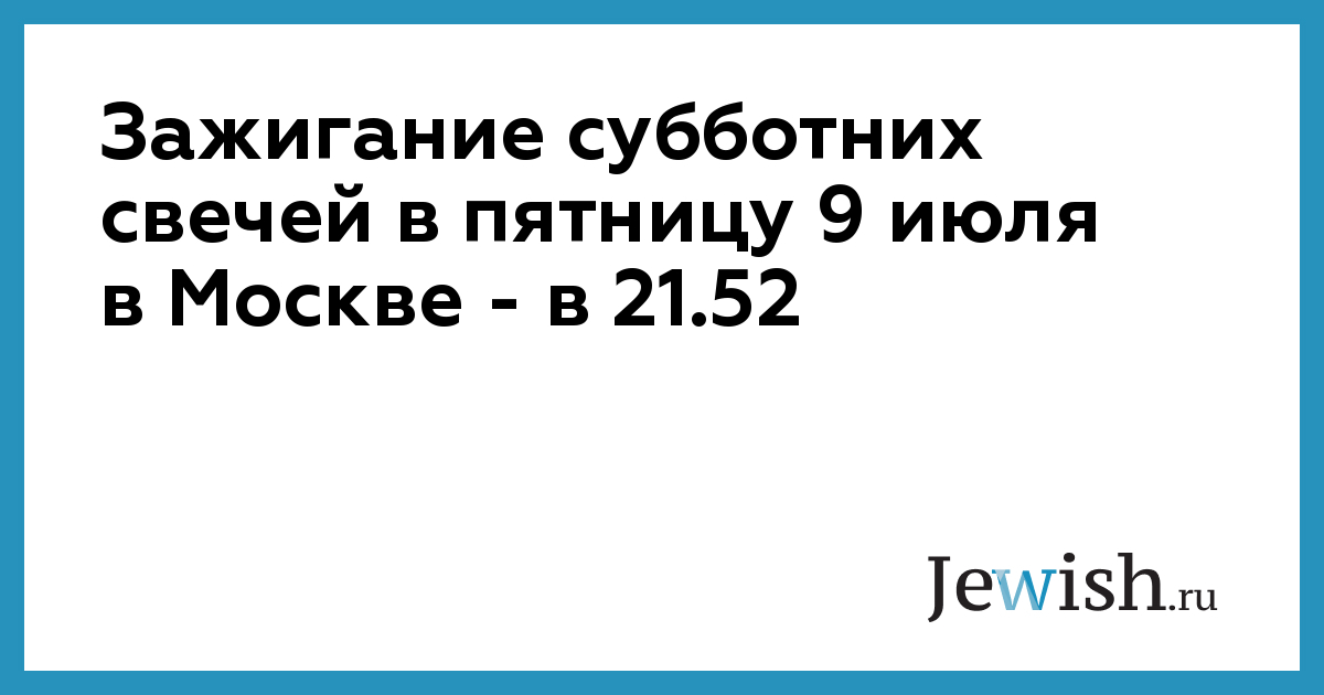 Зажигание субботних свечей в пятницу 9 июля в Москве — в 21.52