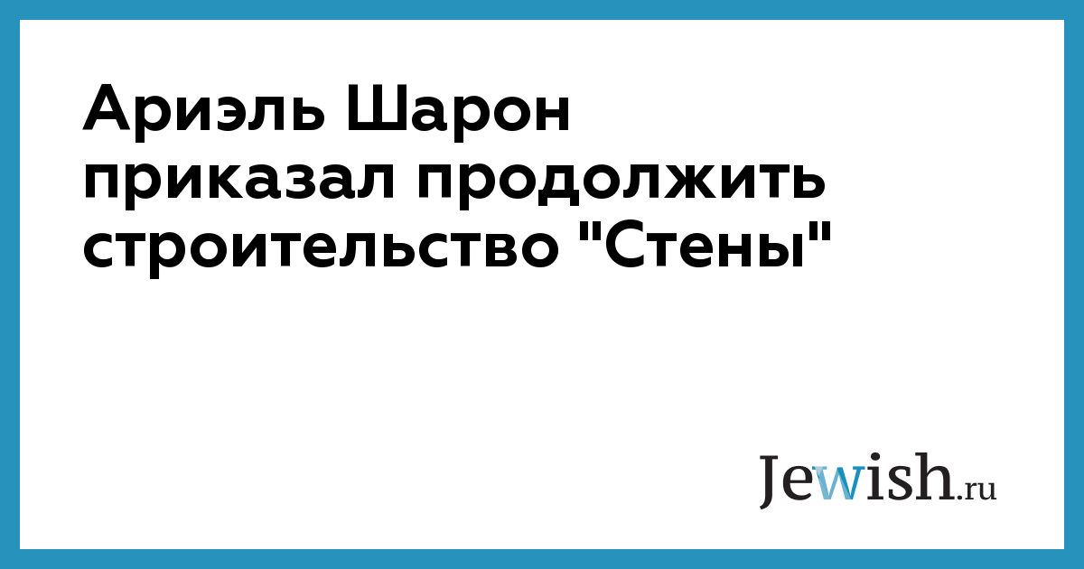 Ариэль Шарон приказал продолжить строительство "Стены"