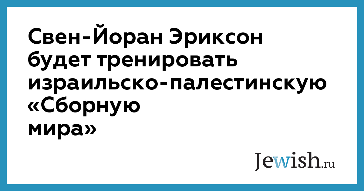 Свен-Йоран Эриксон будет тренировать израильско-палестинскую «Сборную мира»