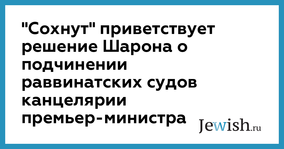 "Сохнут" приветствует решение Шарона о подчинении раввинатских судов канцелярии премьер-министра