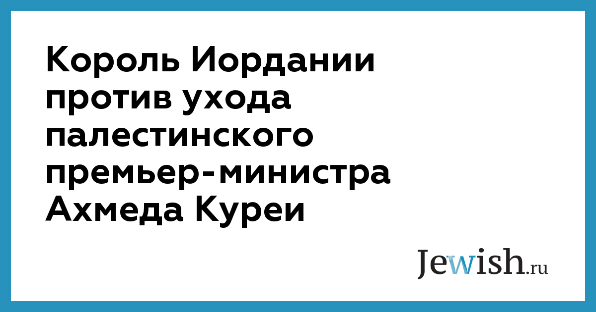 Король Иордании против ухода палестинского премьер-министра Ахмеда Куреи
