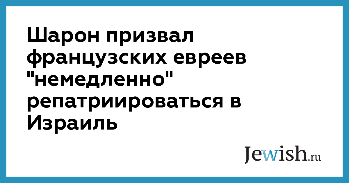 Выступая в Иерусалиме перед представителями американских еврейских организаций, Шарон заявил: "Я предлагаю всем евреям переехать в Израиль, но евреям Франции это абсолютно необходимо, и они должны немедленно тронуться в путь".