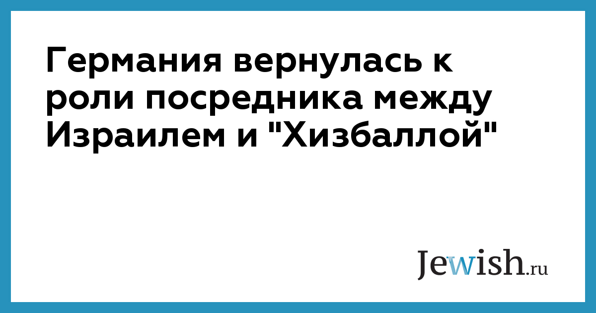 Германия вернулась к роли посредника между Израилем и "Хизбаллой"