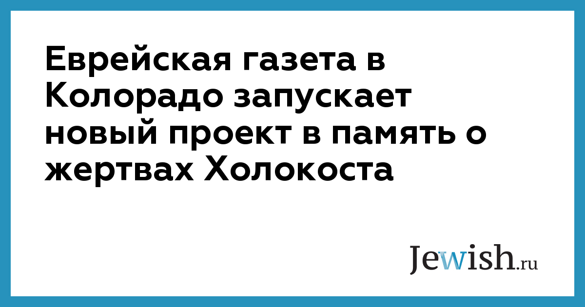 Еврейская газета в Колорадо запускает новый проект в память о жертвах Холокоста