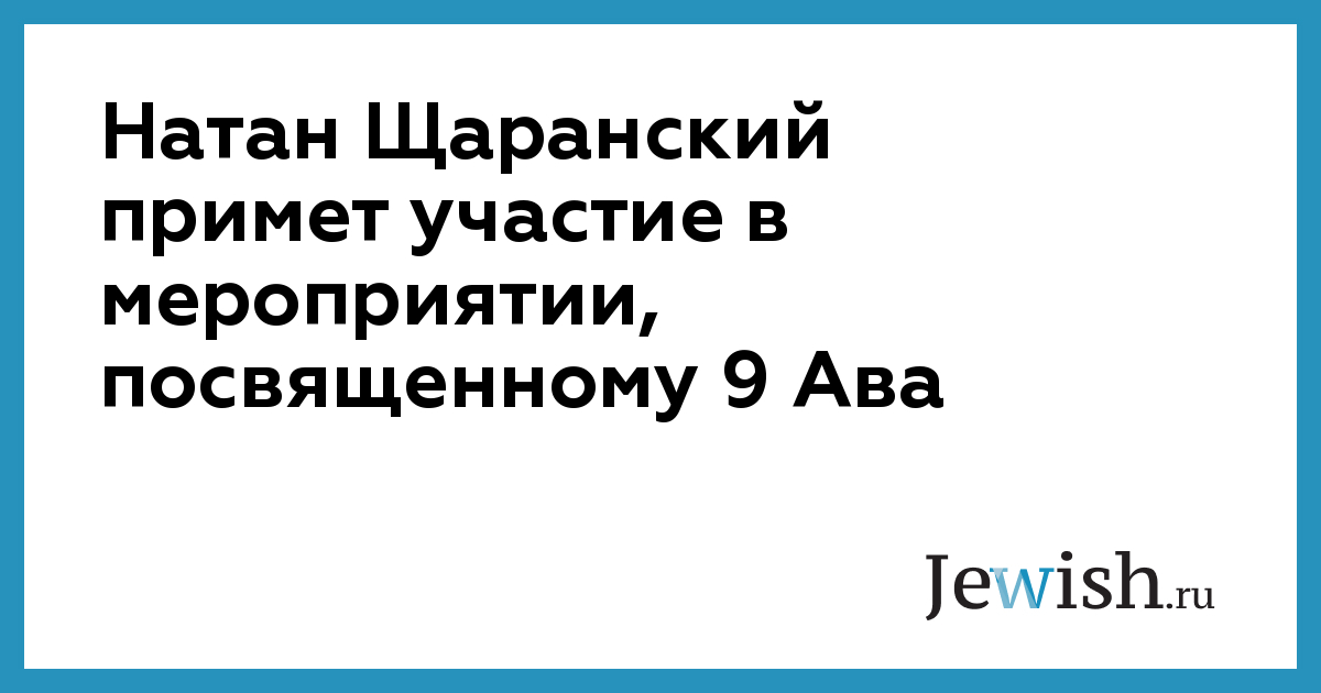 Натан Щаранский примет участие в мероприятии, посвященному 9 Ава