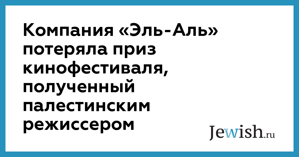 Компания «Эль-Аль» потеряла приз кинофестиваля, полученный палестинским режиссером