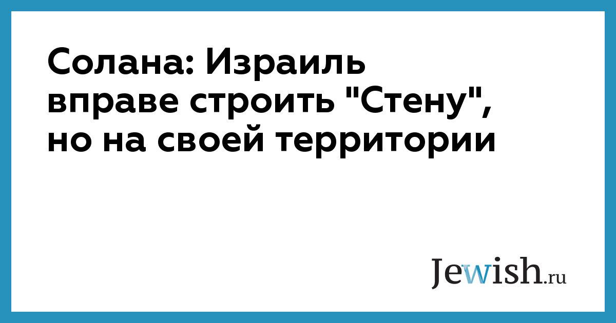 Солана: Израиль вправе строить "Стену", но на своей территории