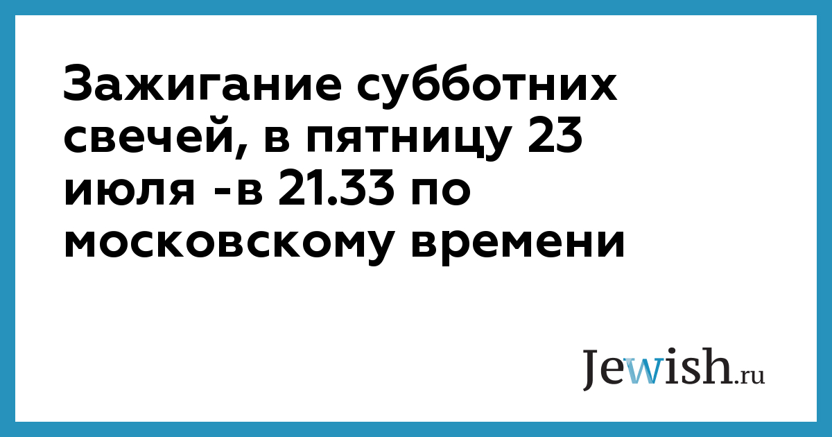 Зажигание субботних свечей, в пятницу 23 июля -в 21.33 по московскому времени