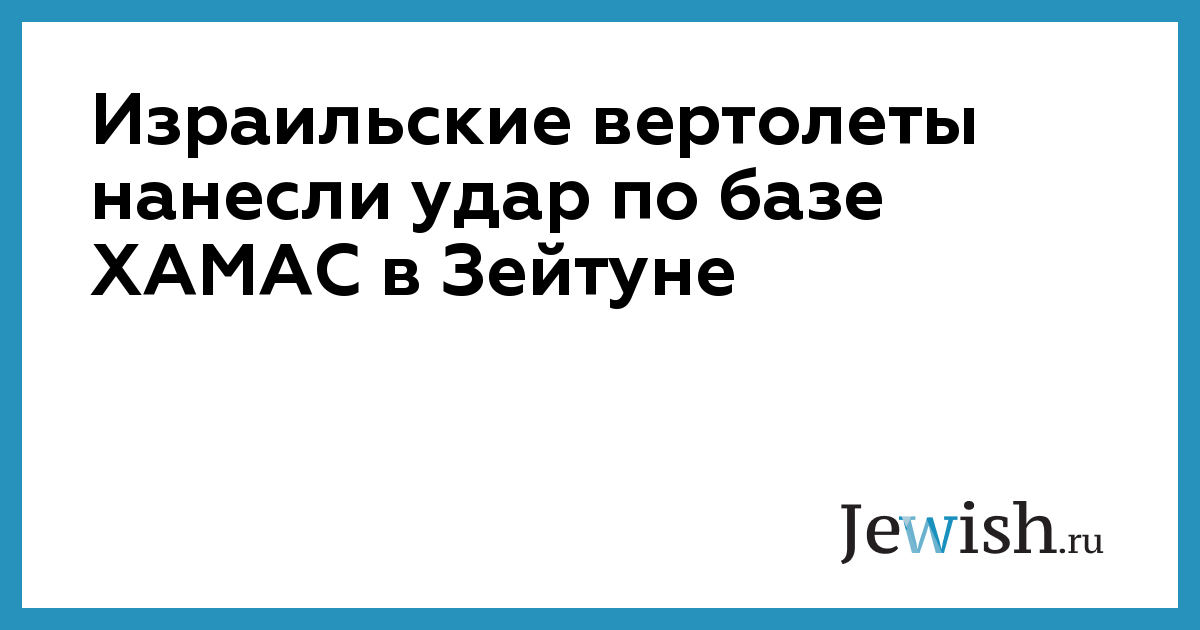 Израильские вертолеты нанесли удар по базе ХАМАС в Зейтуне