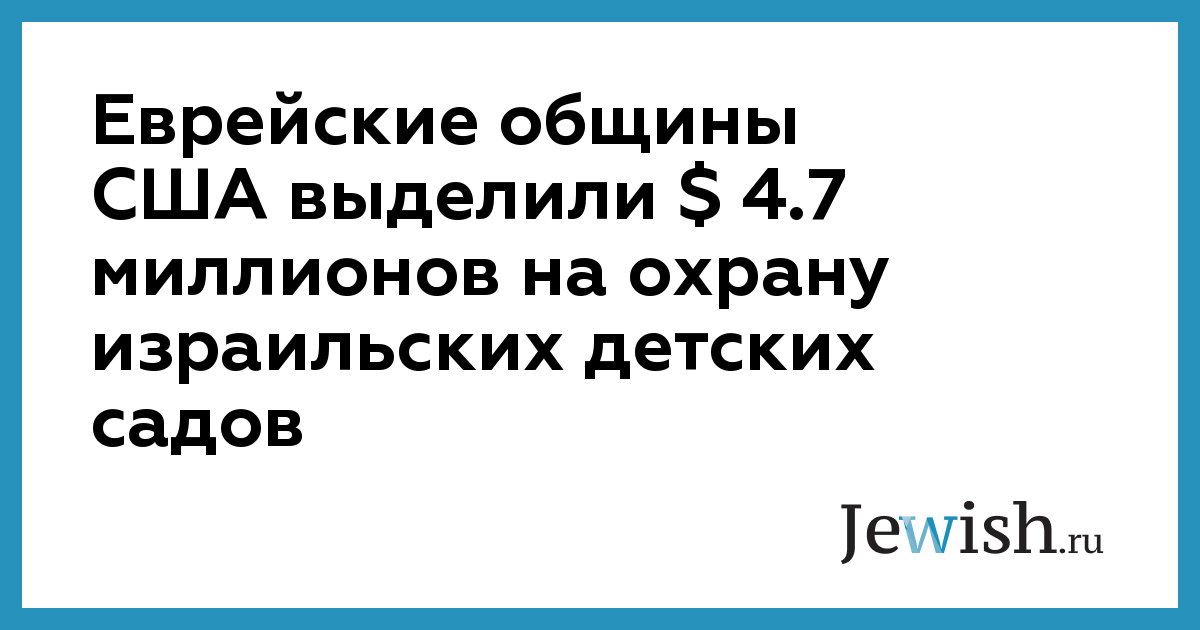 Еврейские общины США выделили $ 4.7 миллионов на охрану израильских детских садов