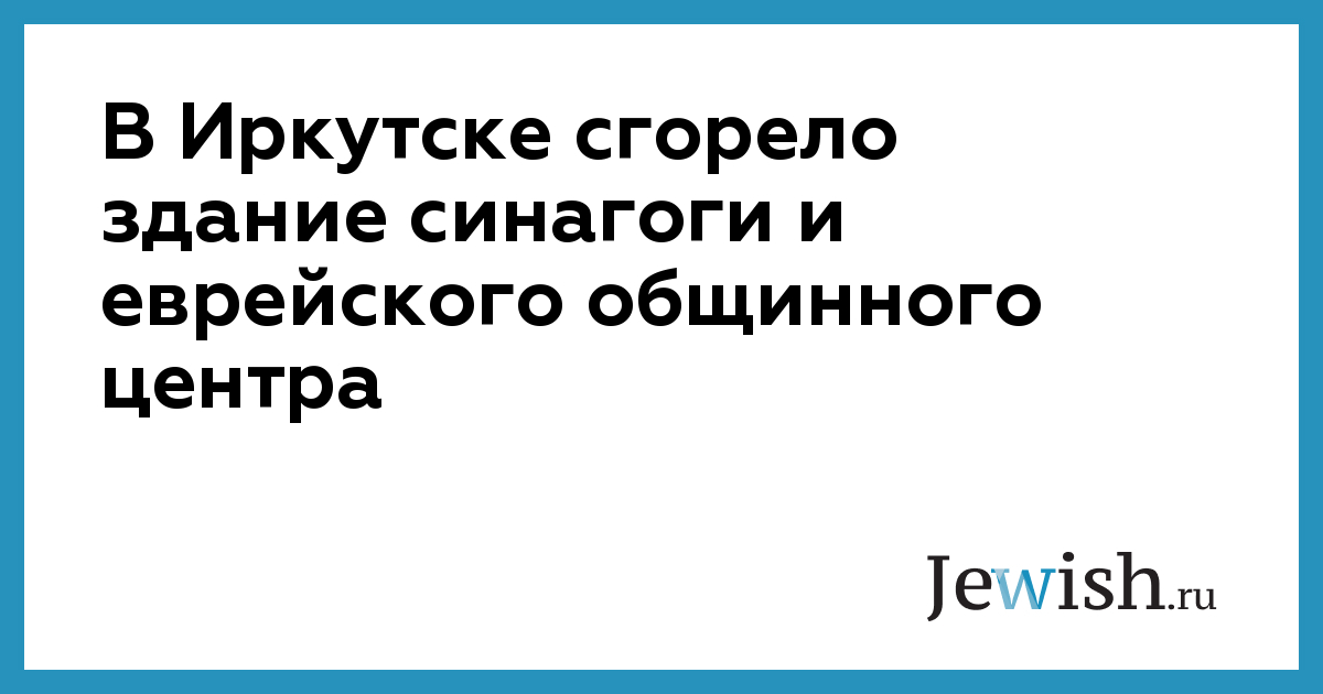 В Иркутске сгорело здание синагоги и еврейского общинного центра