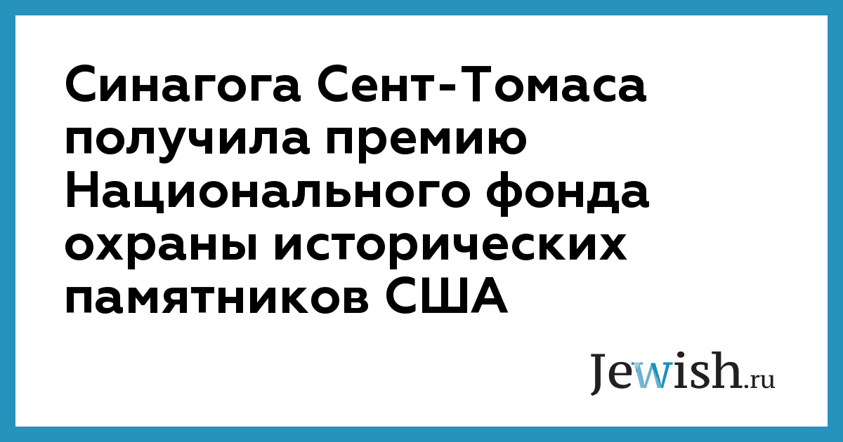 Синагога Сент-Томаса получила премию Национального фонда охраны исторических памятников США