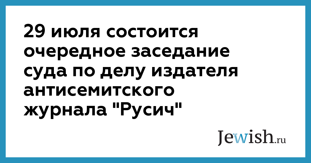 29 июля состоится очередное заседание суда по делу издателя антисемитского журнала "Русич"