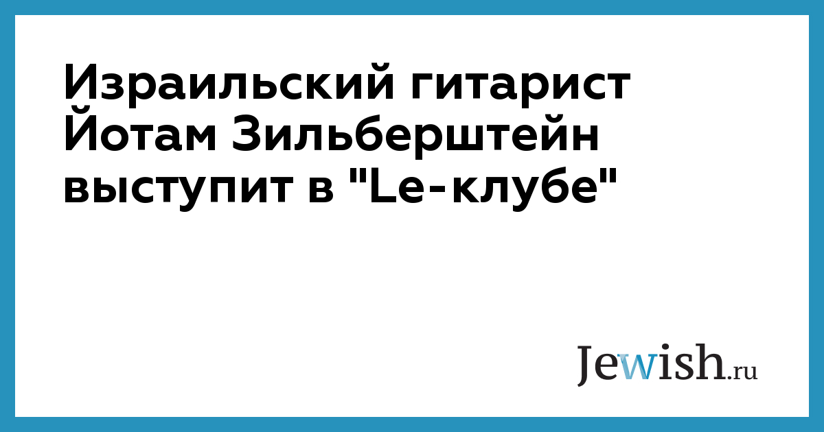 Израильский гитарист Йотам Зильберштейн выступит в "Le-клубе"