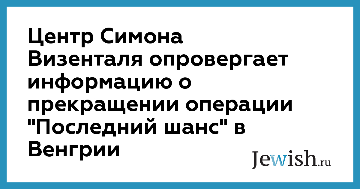 Центр Симона Визенталя опровергает информацию о прекращении операции "Последний шанс" в Венгрии