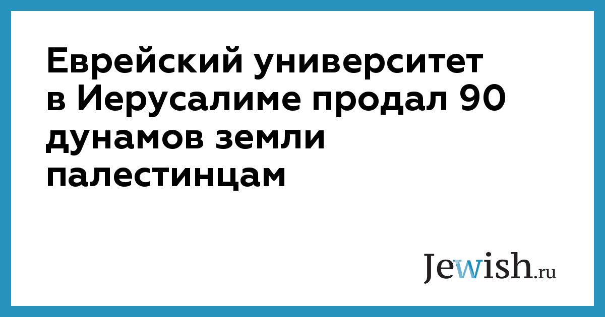 Еврейский университет в Иерусалиме продал 90 дунамов земли палестинцам