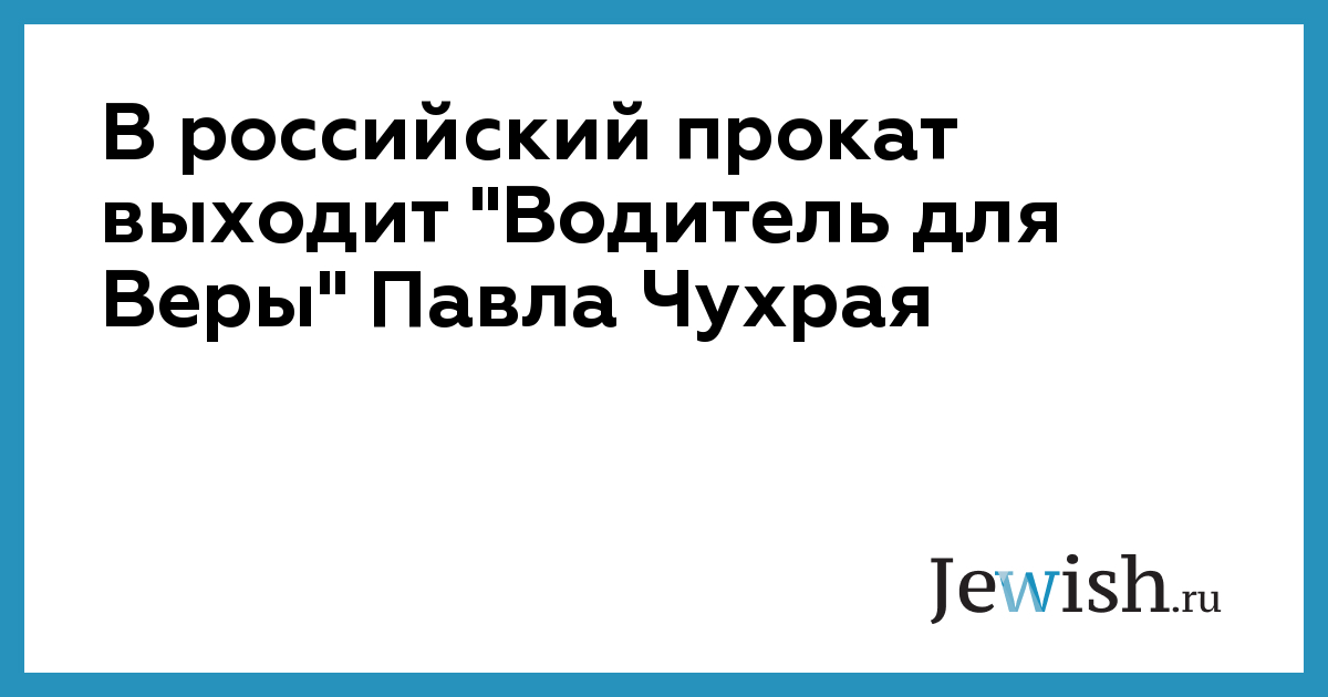 В российский прокат выходит "Водитель для Веры" Павла Чухрая