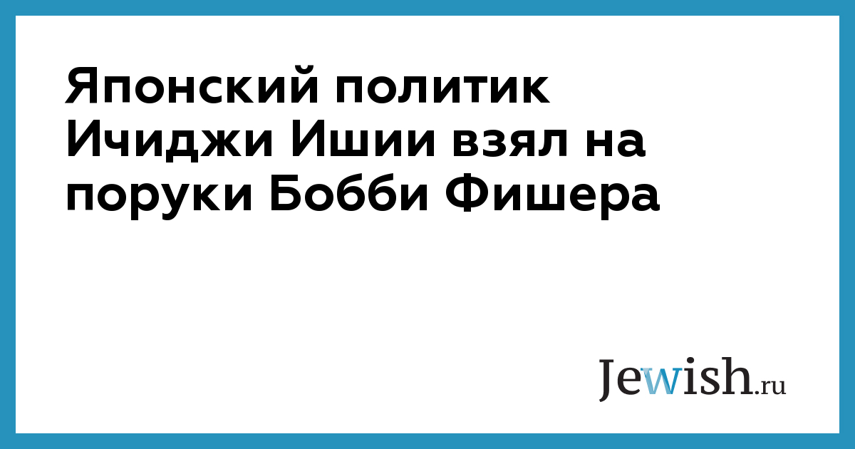 Японский политик Ичиджи Ишии взял на поруки Бобби Фишера