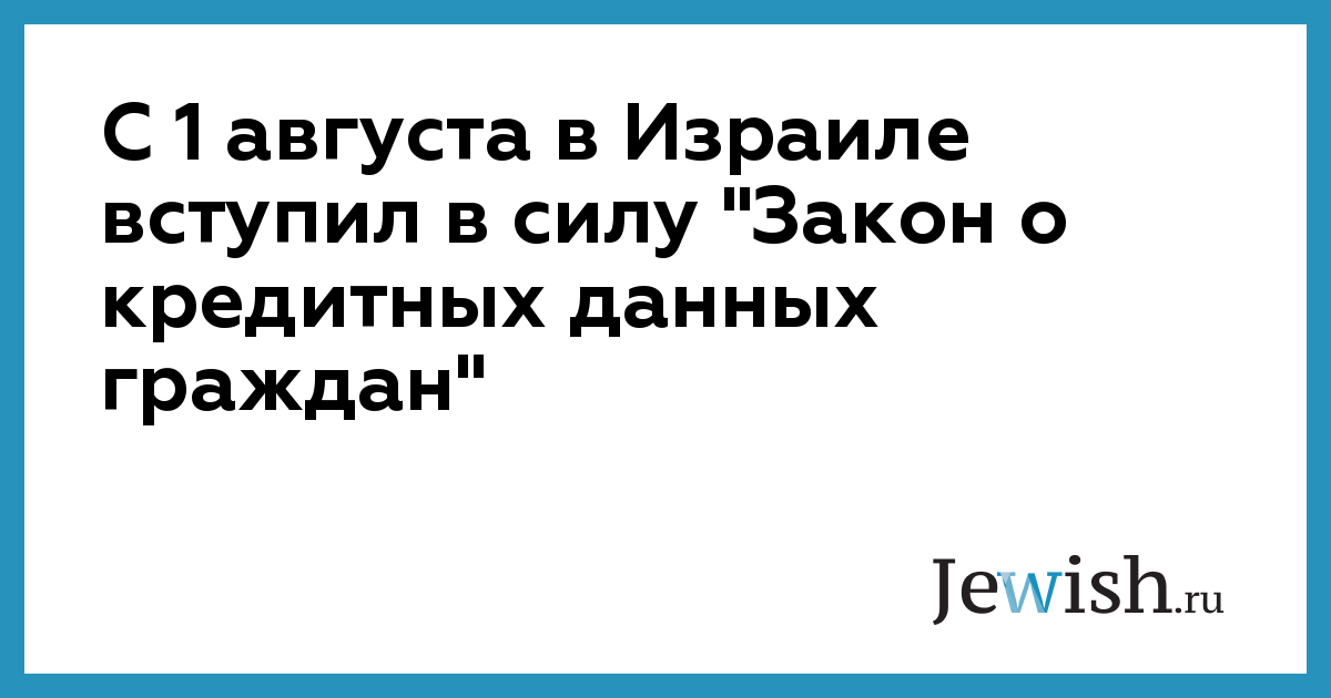 С 1 августа в Израиле вступил в силу "Закон о кредитных данных граждан"