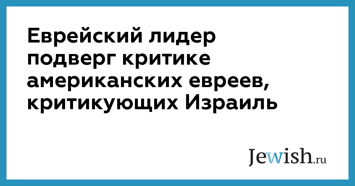 Еврейский лидер подверг критике американских евреев, критикующих Израиль