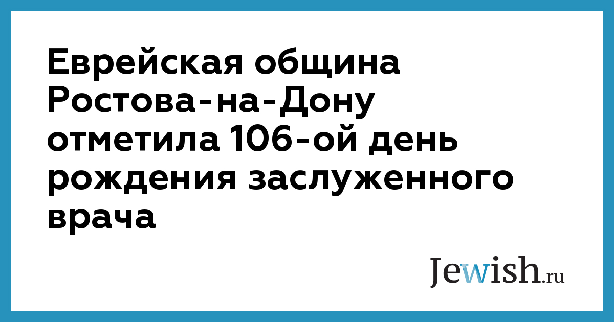 Еврейская община Ростова-на-Дону отметила 106-ой день рождения заслуженного врача