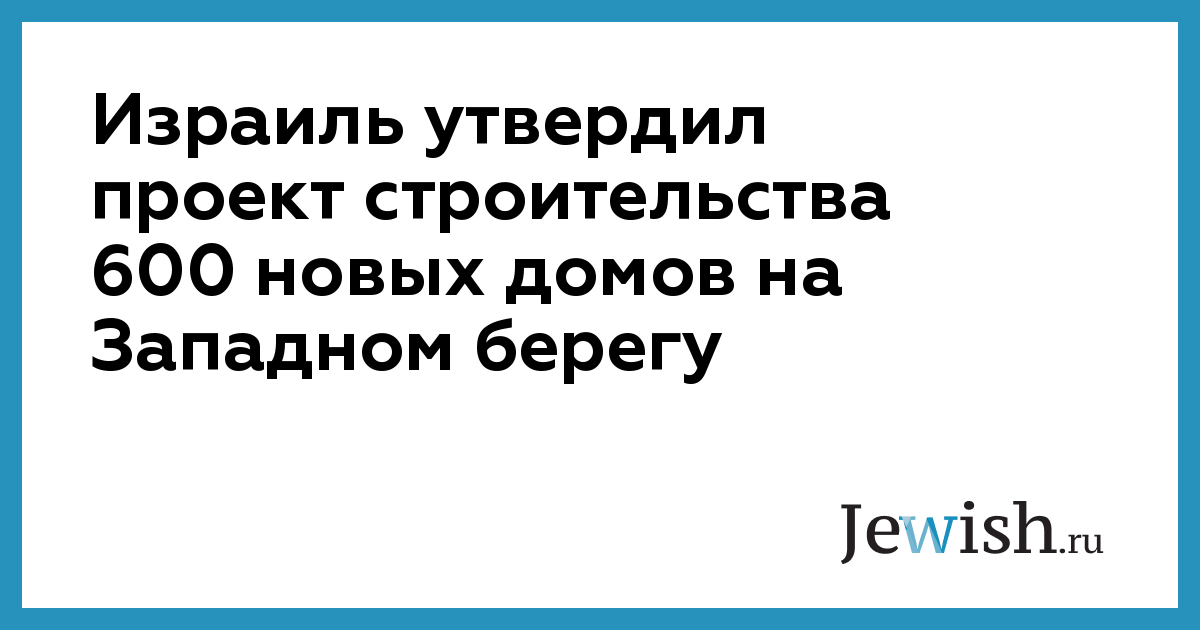 Израиль утвердил проект строительства 600 новых домов на Западном берегу