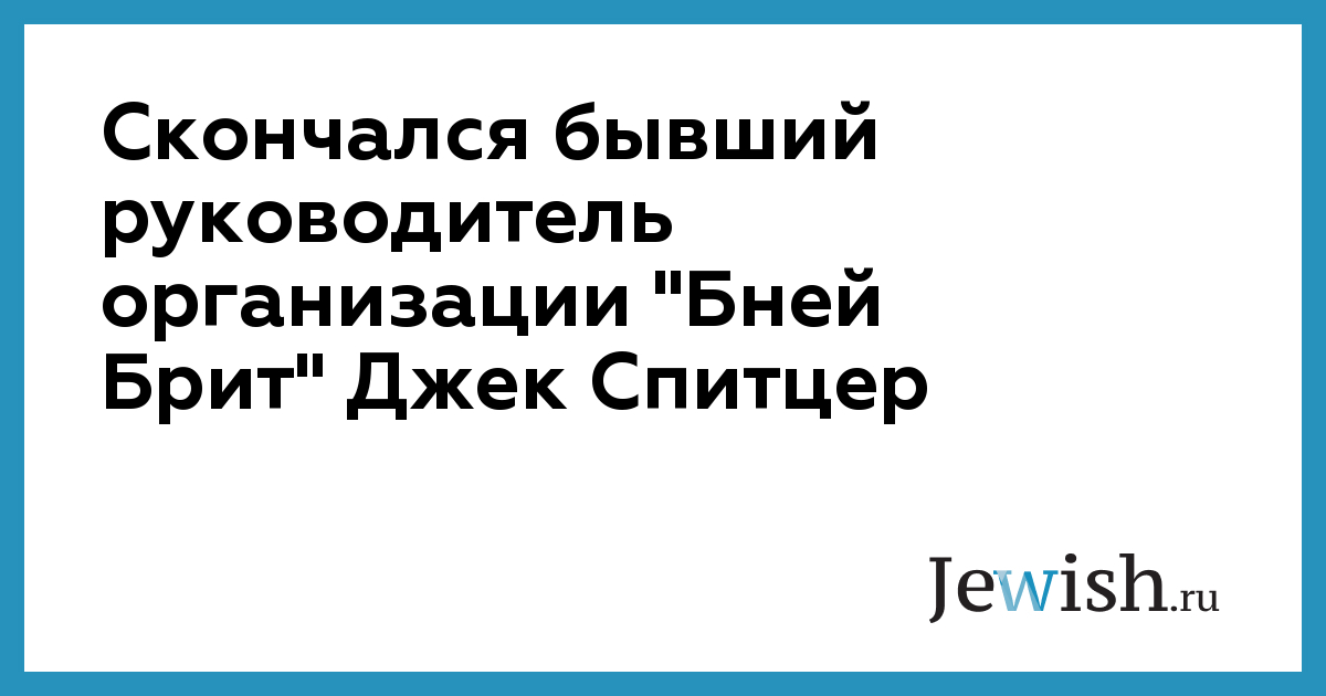 Скончался бывший руководитель организации "Бней Брит" Джек Спитцер