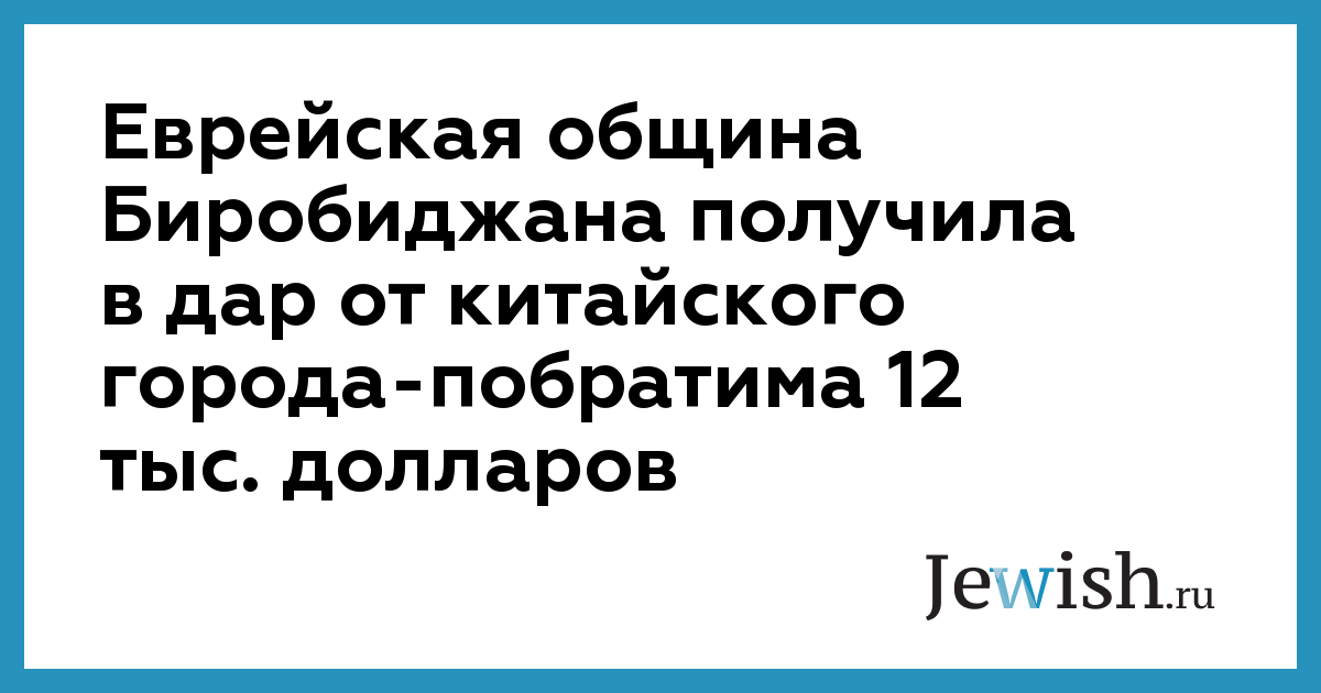 Еврейская община Биробиджана получила в дар от китайского города-побратима 12 тыс. долларов