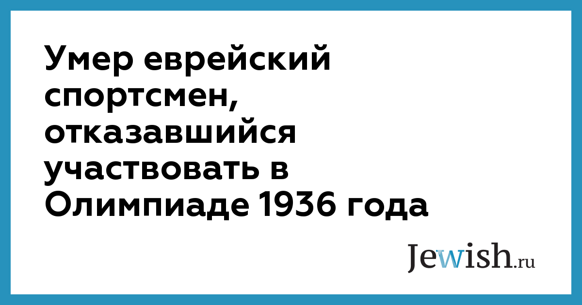 Умер еврейский спортсмен, отказавшийся участвовать в Олимпиаде 1936 года