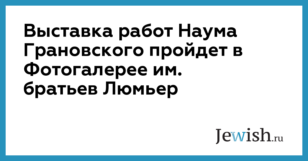 Выставка работ Наума Грановского пройдет в Фотогалерее им. братьев Люмьер