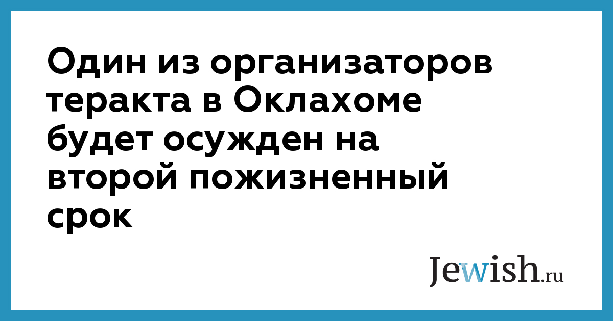 Один из организаторов теракта в Оклахоме будет осужден на второй пожизненный срок