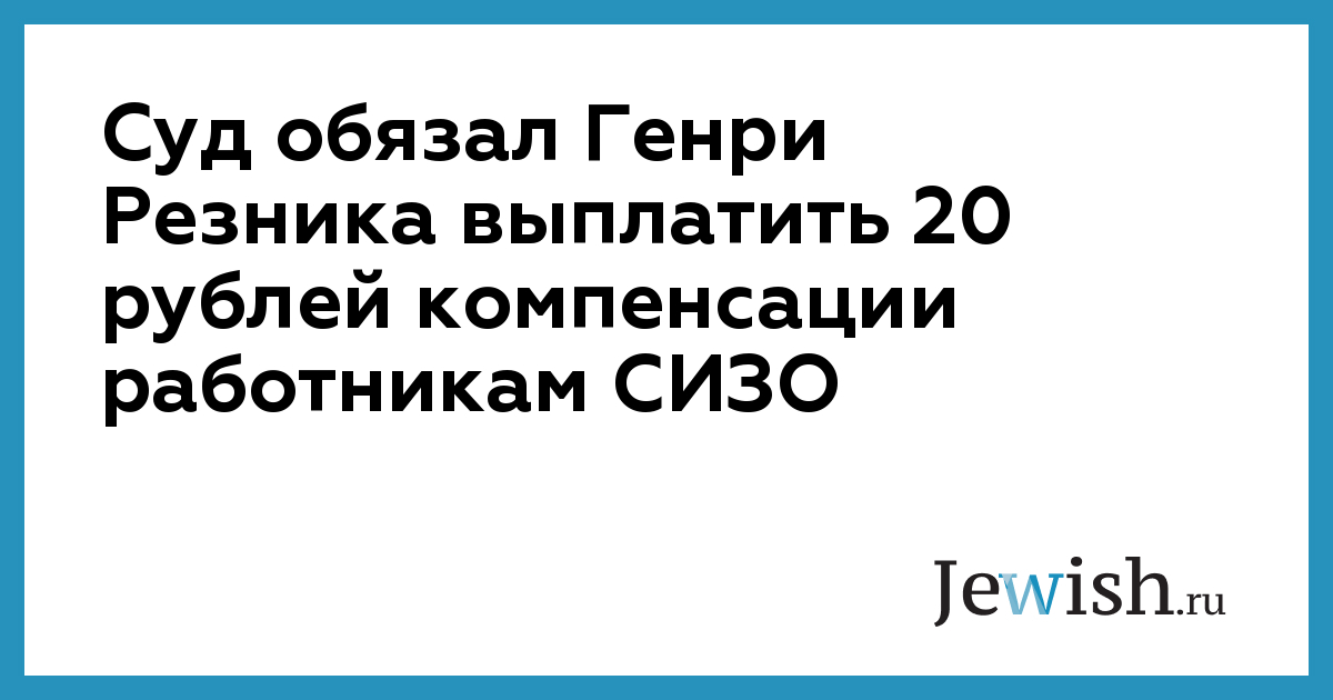 Суд обязал Генри Резника выплатить 20 рублей компенсации работникам СИЗО