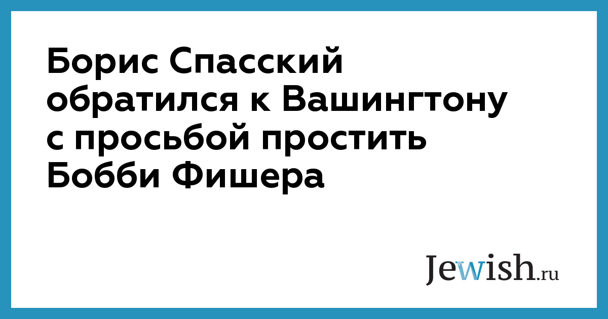 Борис Спасский обратился к Вашингтону с просьбой простить Бобби Фишера