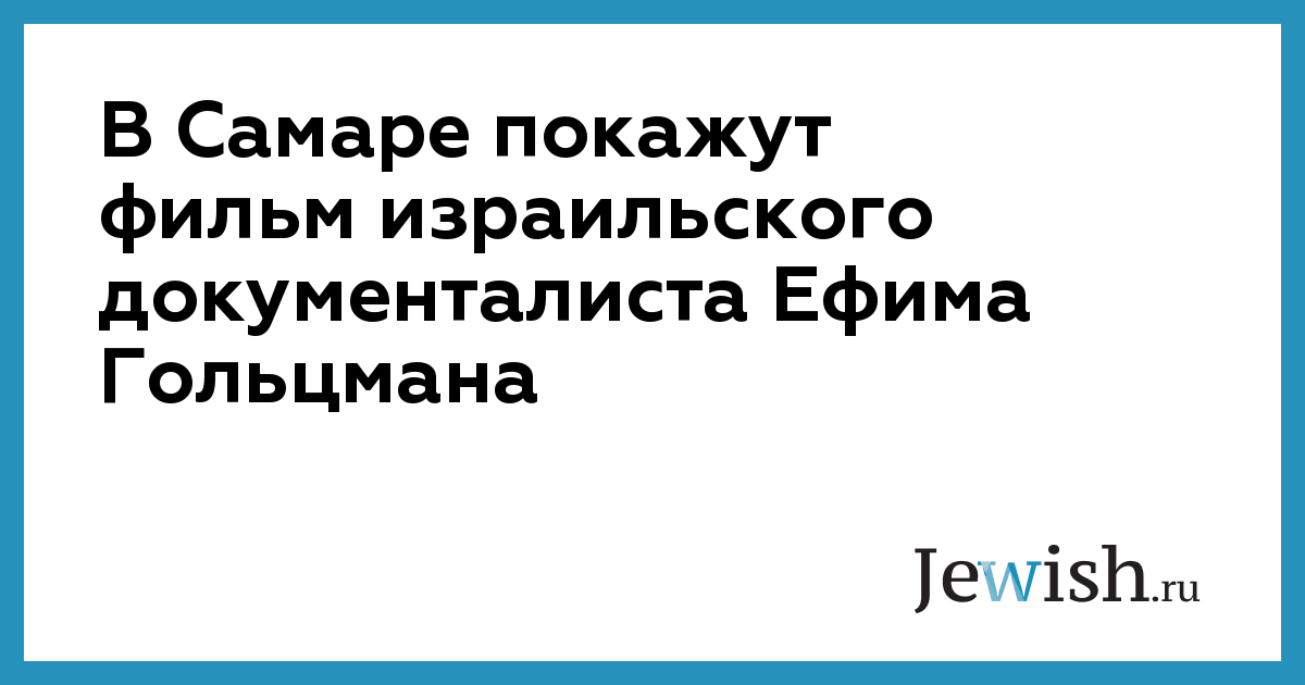 В Самаре покажут фильм израильского документалиста Ефима Гольцмана