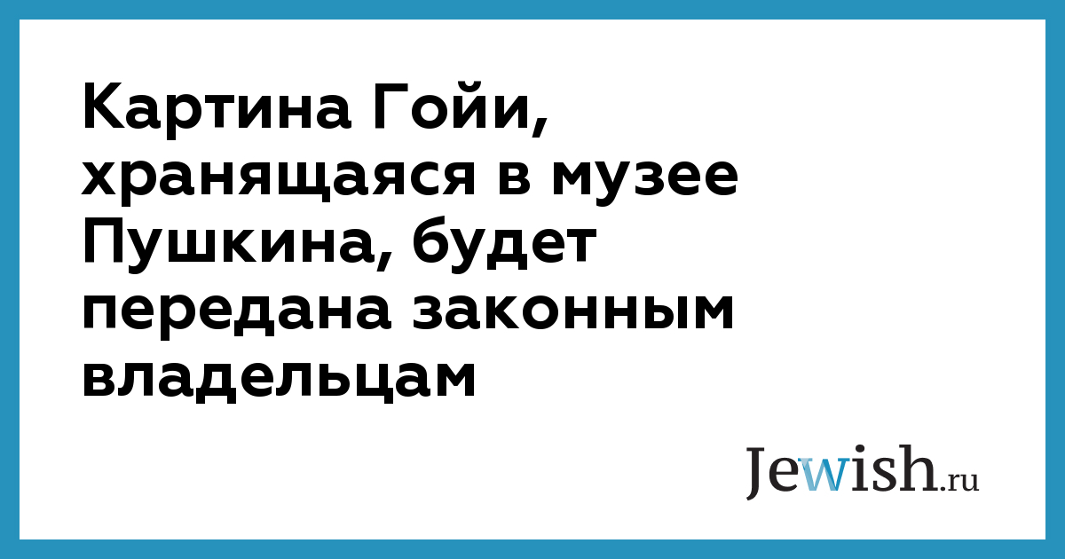 Картина Гойи, хранящаяся в музее Пушкина, будет передана законным владельцам