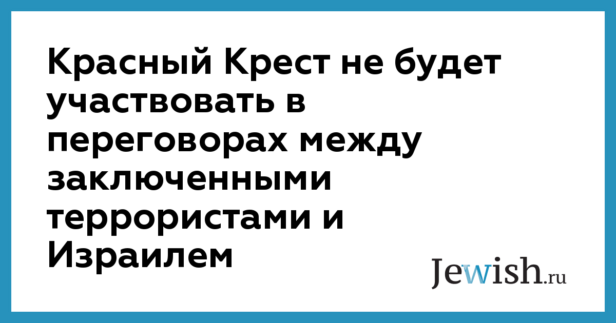 Красный Крест не будет участвовать в переговорах между заключенными террористами и Израилем