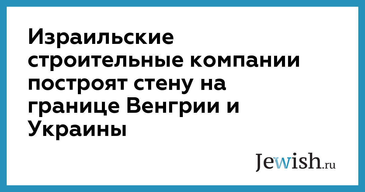 Израильские строительные компании построят стену на границе Венгрии и Украины