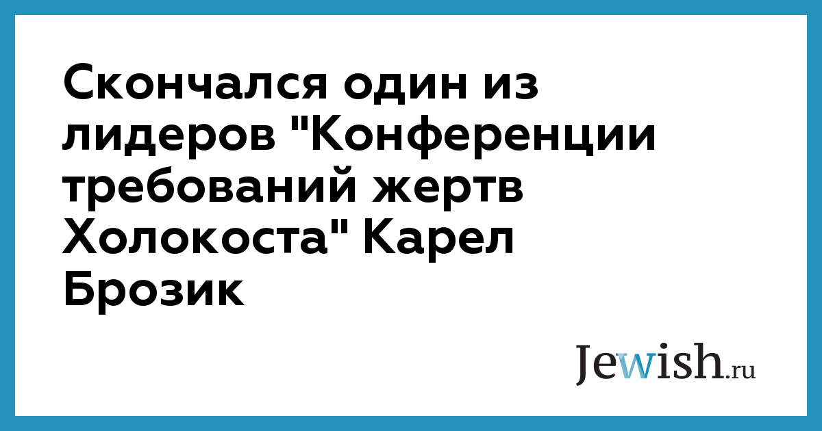Скончался один из лидеров "Конференции требований жертв Холокоста" Карел Брозик