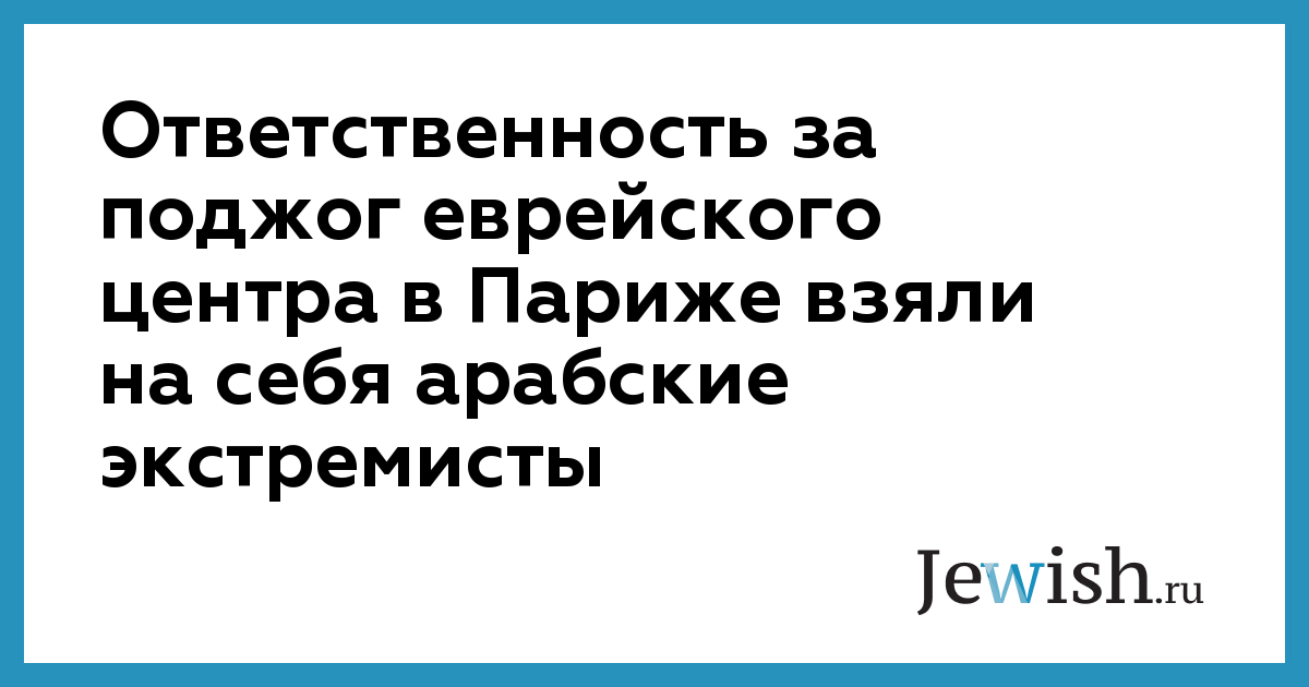 Ответственность за поджог еврейского центра в Париже взяли на себя арабские экстремисты