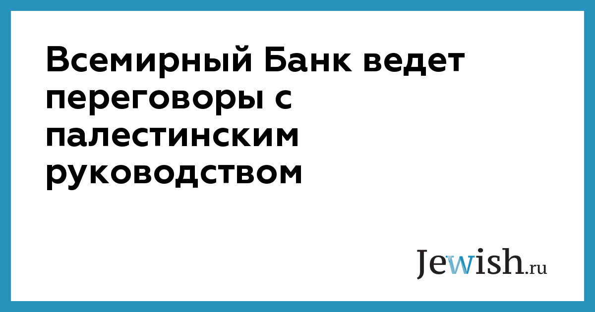 Всемирный Банк ведет переговоры с палестинским руководством