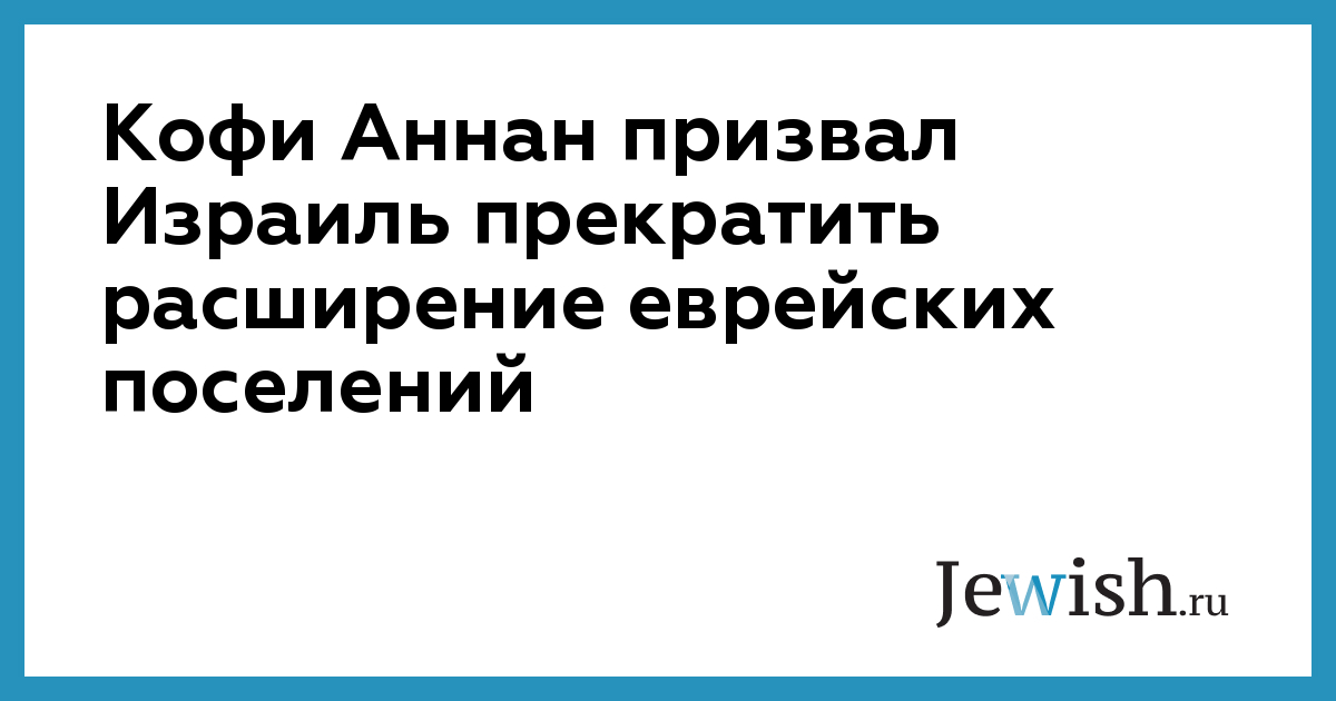 Кофи Аннан призвал Израиль прекратить расширение еврейских поселений