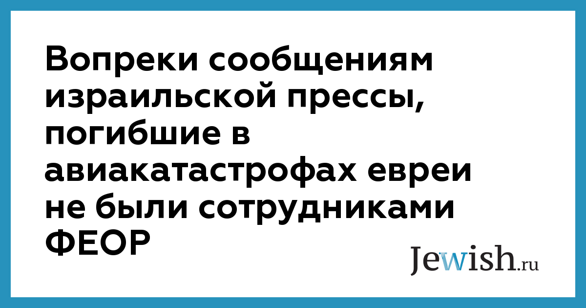 Вопреки сообщениям израильской прессы, погибшие в авиакатастрофах евреи не были сотрудниками ФЕОР